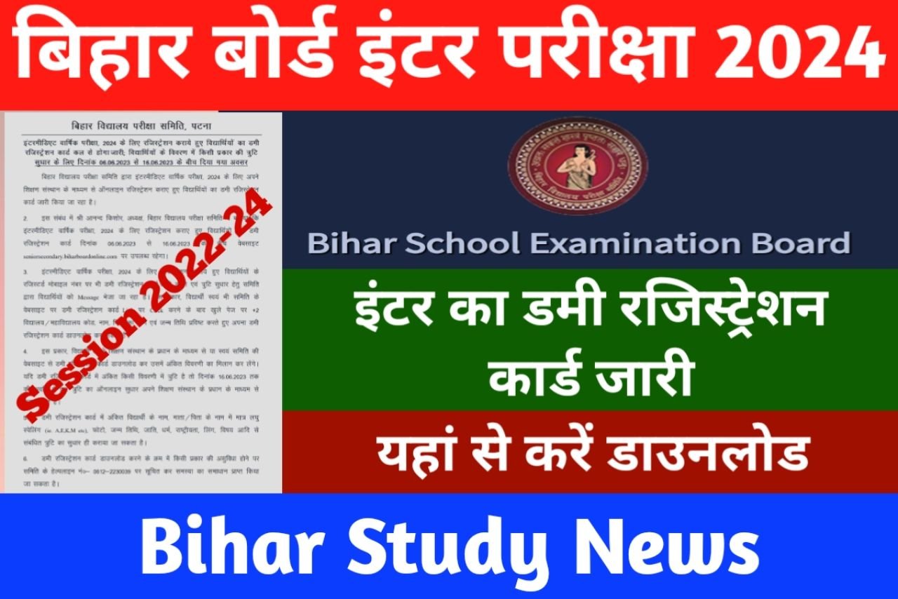 Bihar Board Inter Dummy Registration Card 2023: बिहार बोर्ड के द्वारा ऑफिशियल वेबसाइट पर इंटर परीक्षा इंटर वार्षिक परीक्षा 2024 का डमी रजिस्ट्रेशन कार्ड जारी किया जाएगा, जिसका लिंक नीचे इंपोर्टेंट लिंक्स वाले सेक्शन में मिल जाएगा। जहां से आप अपना डमी रजिस्ट्रेशन कार्ड आसानी से डाउनलोड कर सकते हैं।