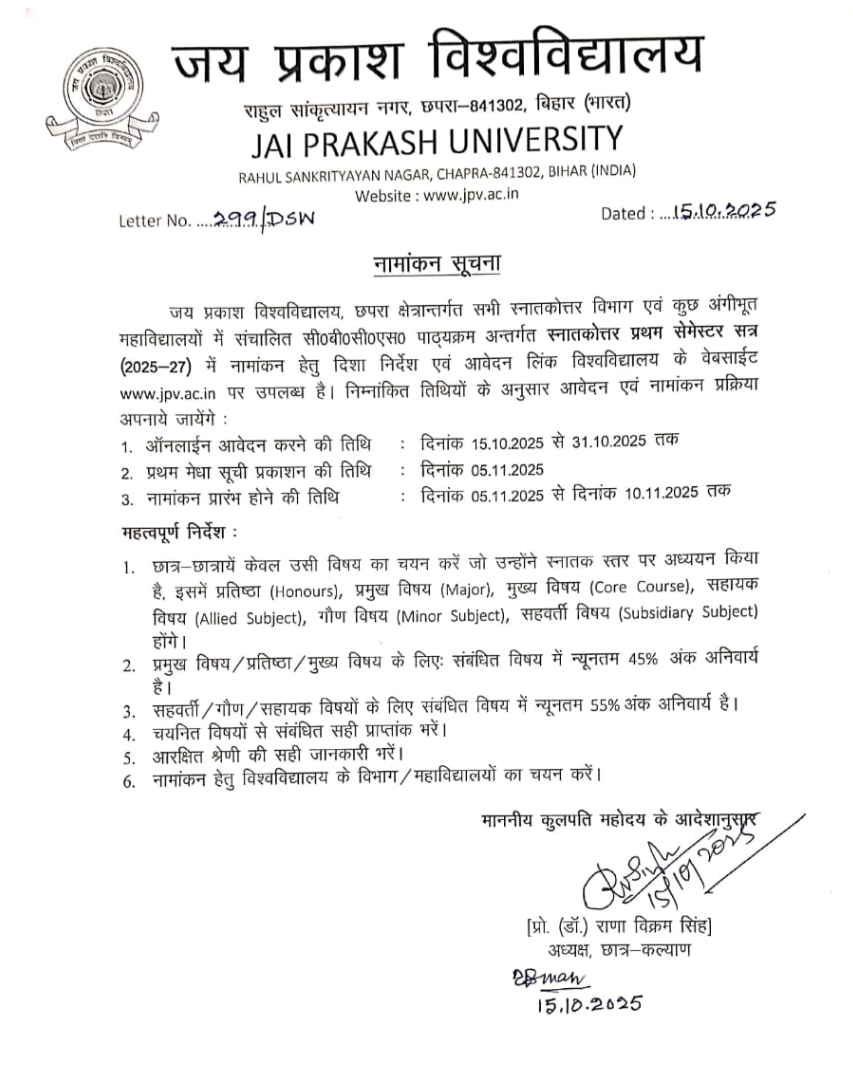 - छात्र-छात्राएं केवल उसी विषय का चयन करें जो उन्होंने स्नातक स्तर पर अध्ययन किया है, इसमें प्रतिष्ठा (Honours), प्रमुख विषय (Major), मुख्य विषय (Core Course), सहायक विषय (Allied Subject), गौण विषय (Minor Subject), सहवर्ती विषय (Subsidiary Subject) होगे।